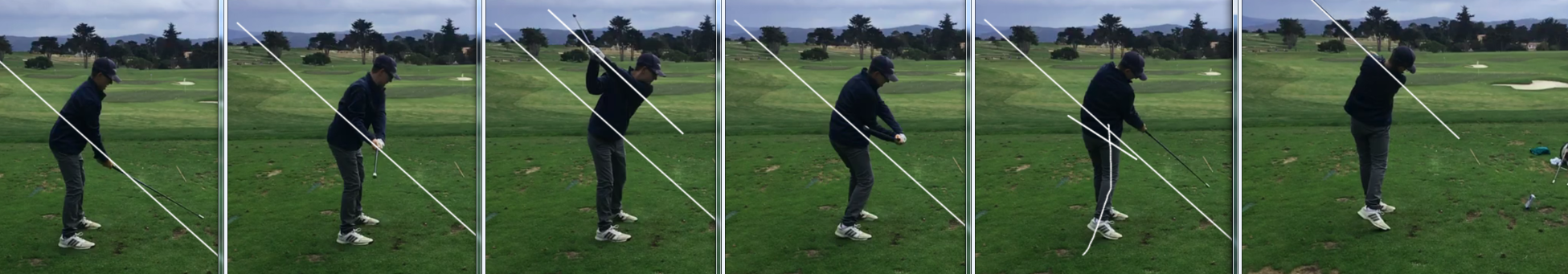 From down the line while you were swinging the SuperSpeed sticks we can see some better positions right away again. Left arm position is more in line with your shoulders at the top with the clubhead perfectly on plane halfway down. Through impact the leg is working more towards the target with the hips more open. The stick exits out of the shoulder plane into a good finish position.
